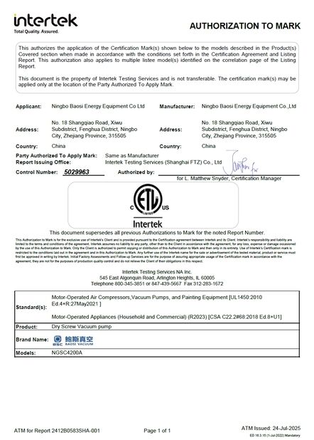 Ningbo Baosi Energy Equipment Co., Ltd. Certificações